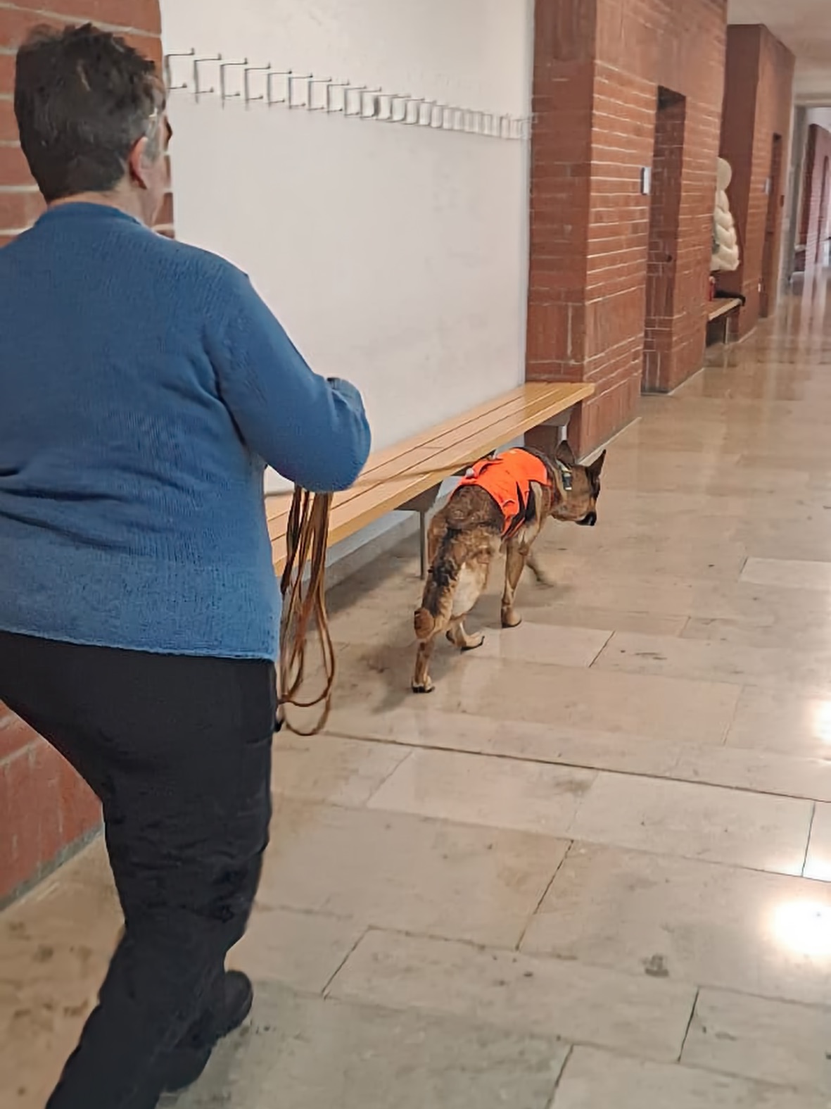 Wir hatten im wahrsten Sinne des Wortes alles Hände voll zu tun. Indoor-Anfängerteams durften von draußen in das Gymnasium hineintrailen. Da konnten sich die Hunde schon vorher auf die dort eindeutige Geruchsspur konzentrieren.