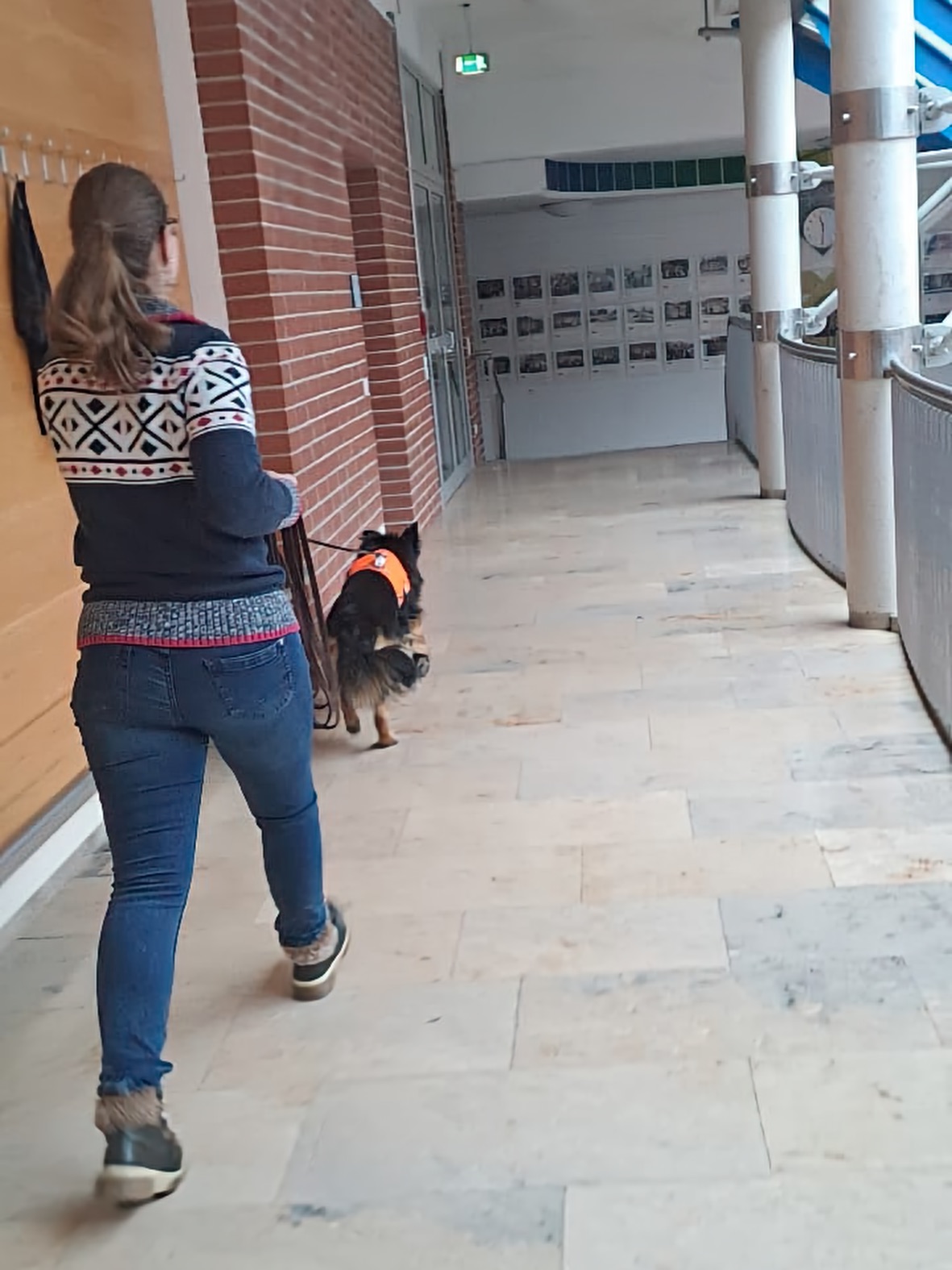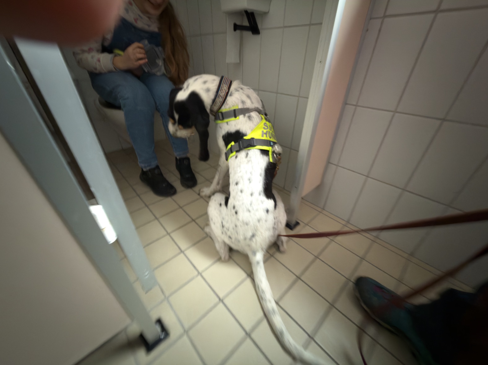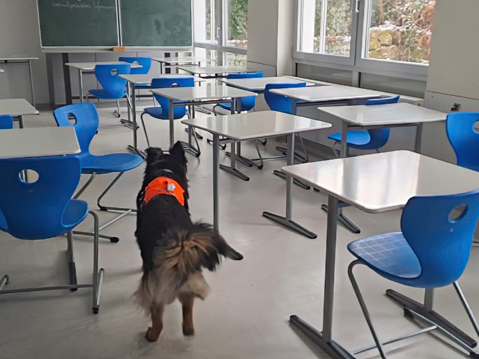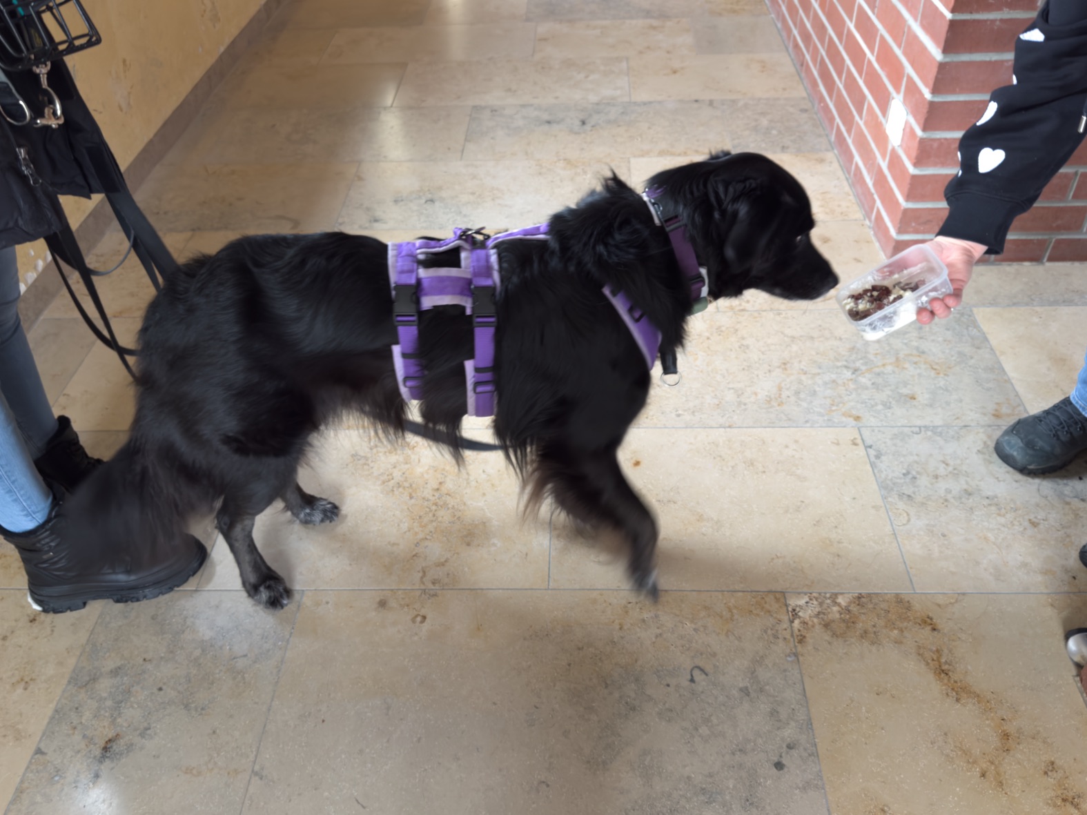Aus unserer Erfahrung des Vorjahrs durften alle Teams, also auch alle Hunde in der großen Empfangshalle des Gymnasiums warten. So waren Mensch und Hund richtig gechillt.
