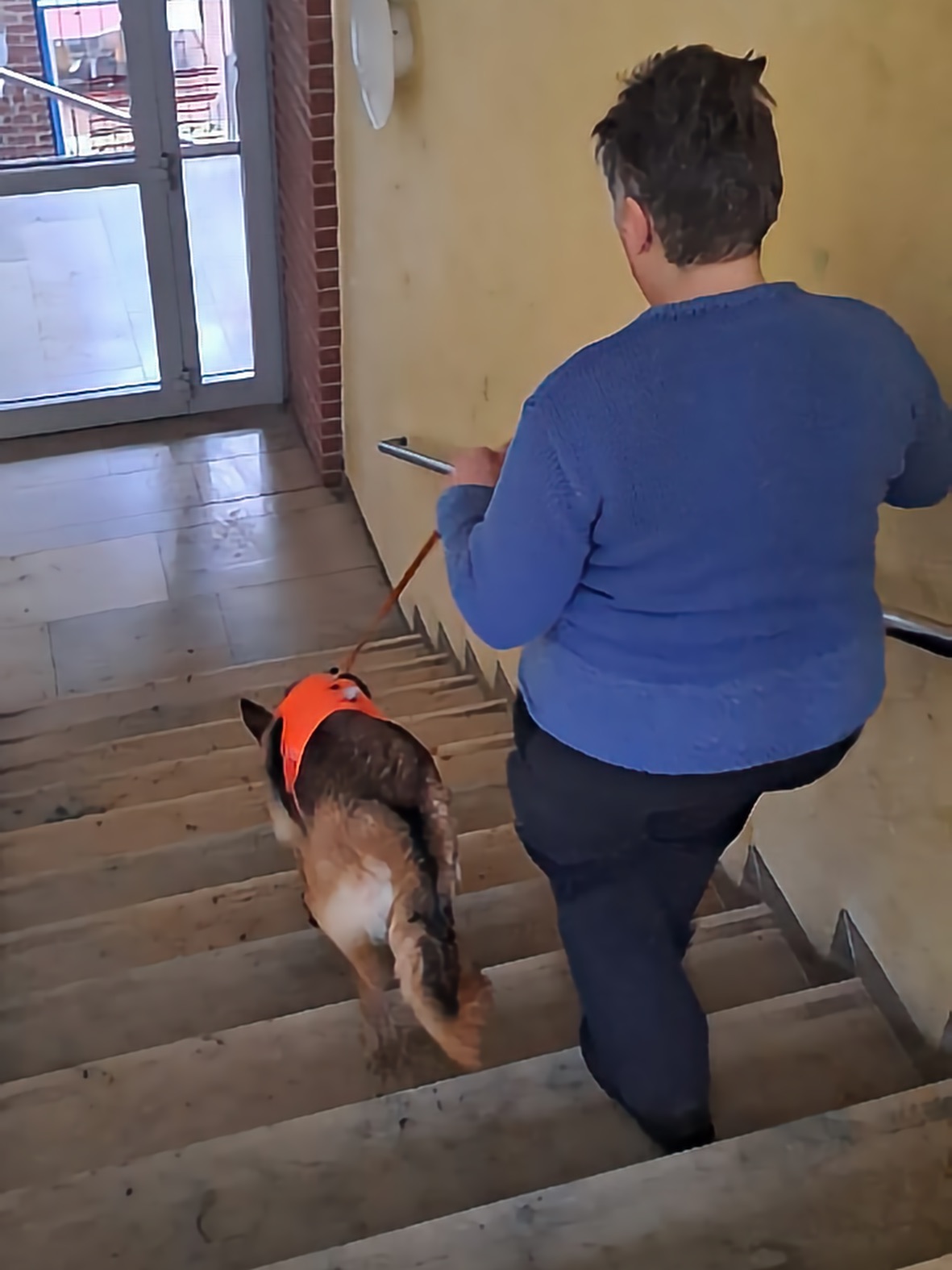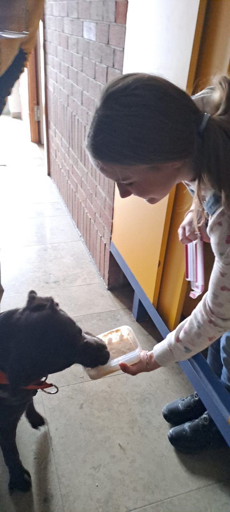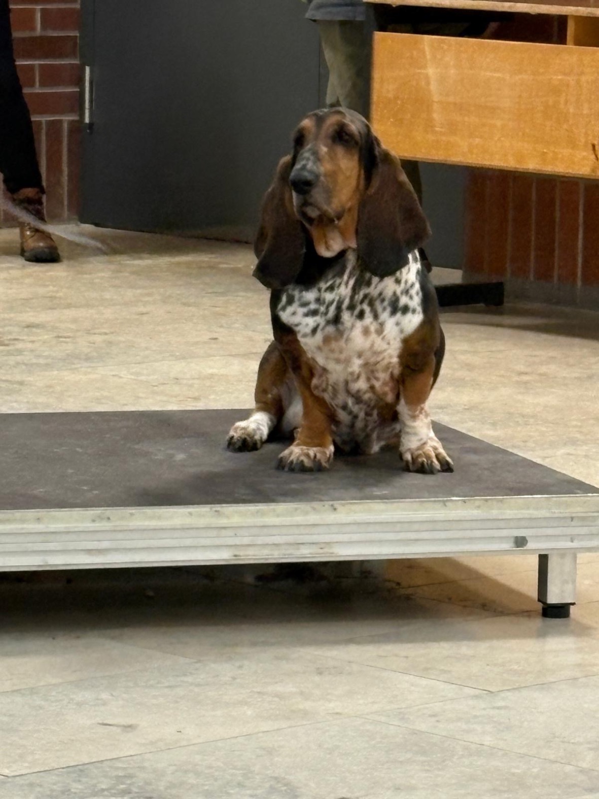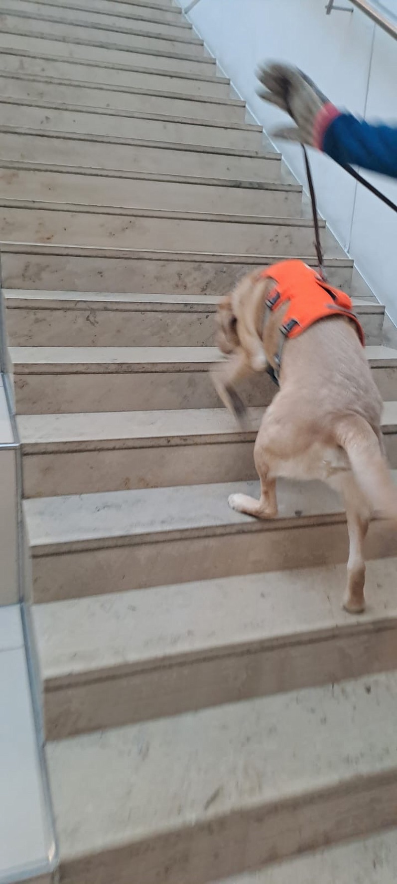 Aus unserer Erfahrung des Vorjahrs durften alle Teams, also auch alle Hunde in der großen Empfangshalle des Gymnasiums warten. So waren Mensch und Hund richtig gechillt.