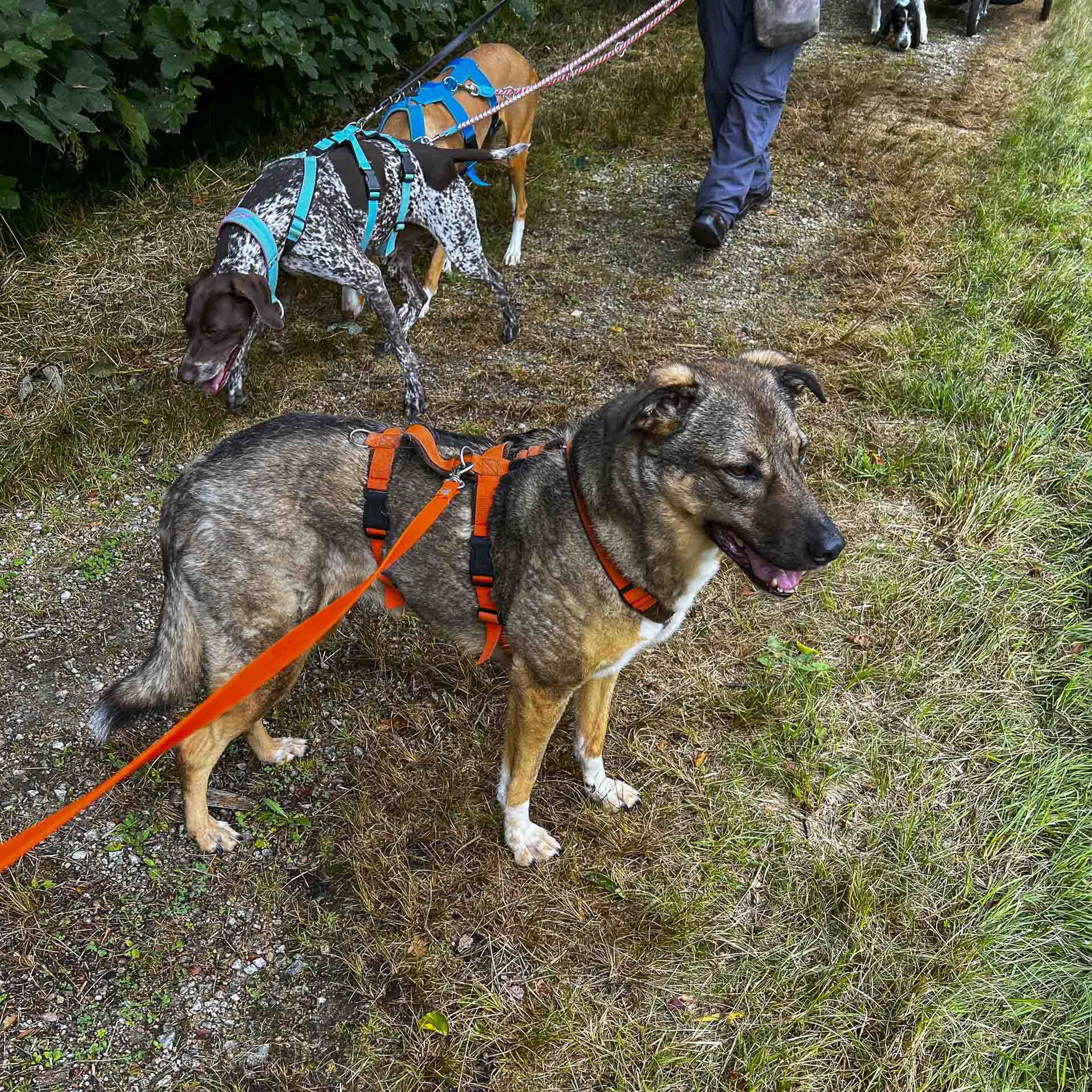Unsere Wanderstrecken haben wir vorab bereits getestet. Sie sind unterschiedlich lang und falls Steigungen dabei sind, sind auch diese nicht zu angstrengend. Für dieses Special solltet ihr vier bis fünf Stunden einplanen. Wir wandern Samstag, Sonntag oder an Feiertagen. Wir bitten um Verständnis, dass je Team nur ein Hund mitgenommen werden kann.