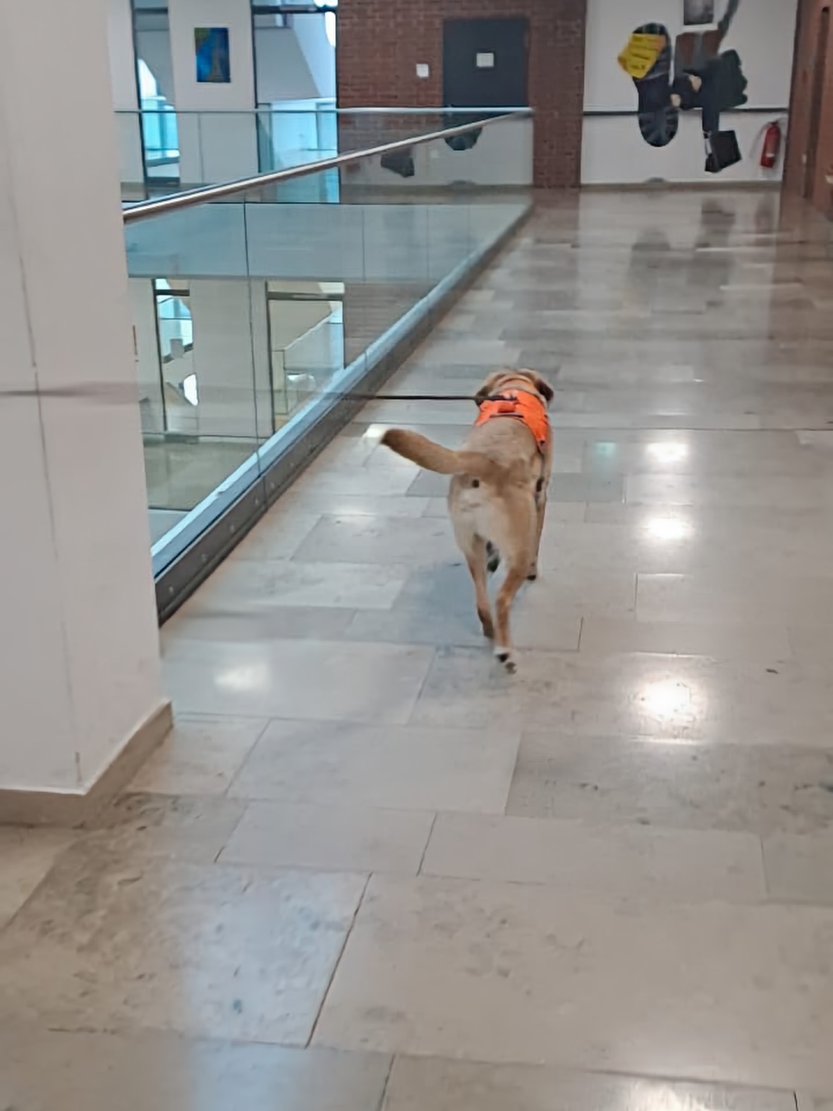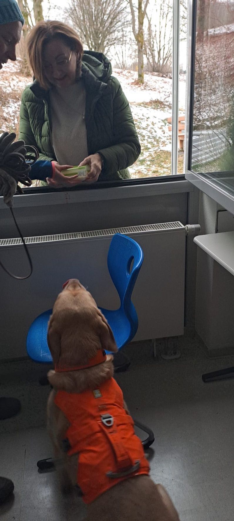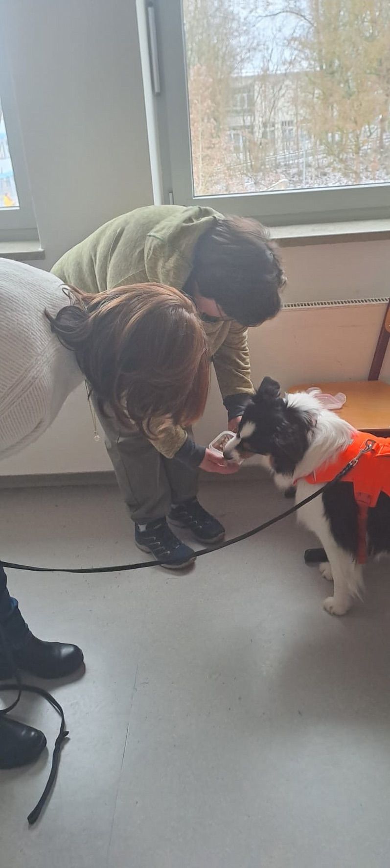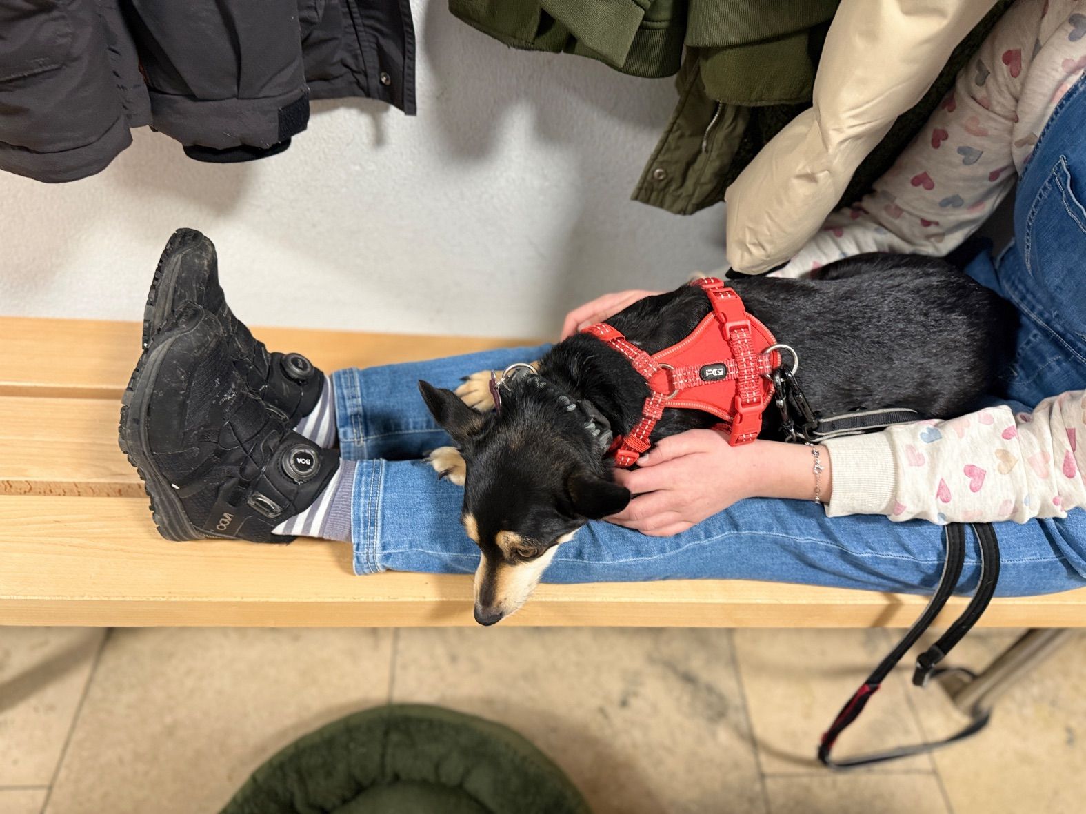 Aus unserer Erfahrung des Vorjahrs durften alle Teams, also auch alle Hunde in der großen Empfangshalle des Gymnasiums warten. So waren Mensch und Hund richtig gechillt.