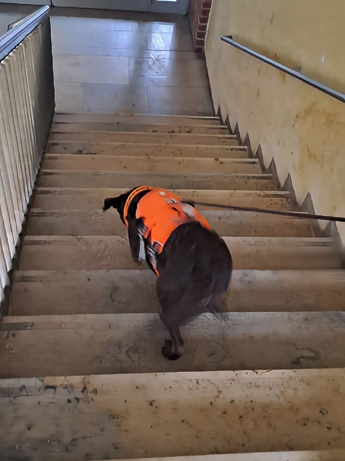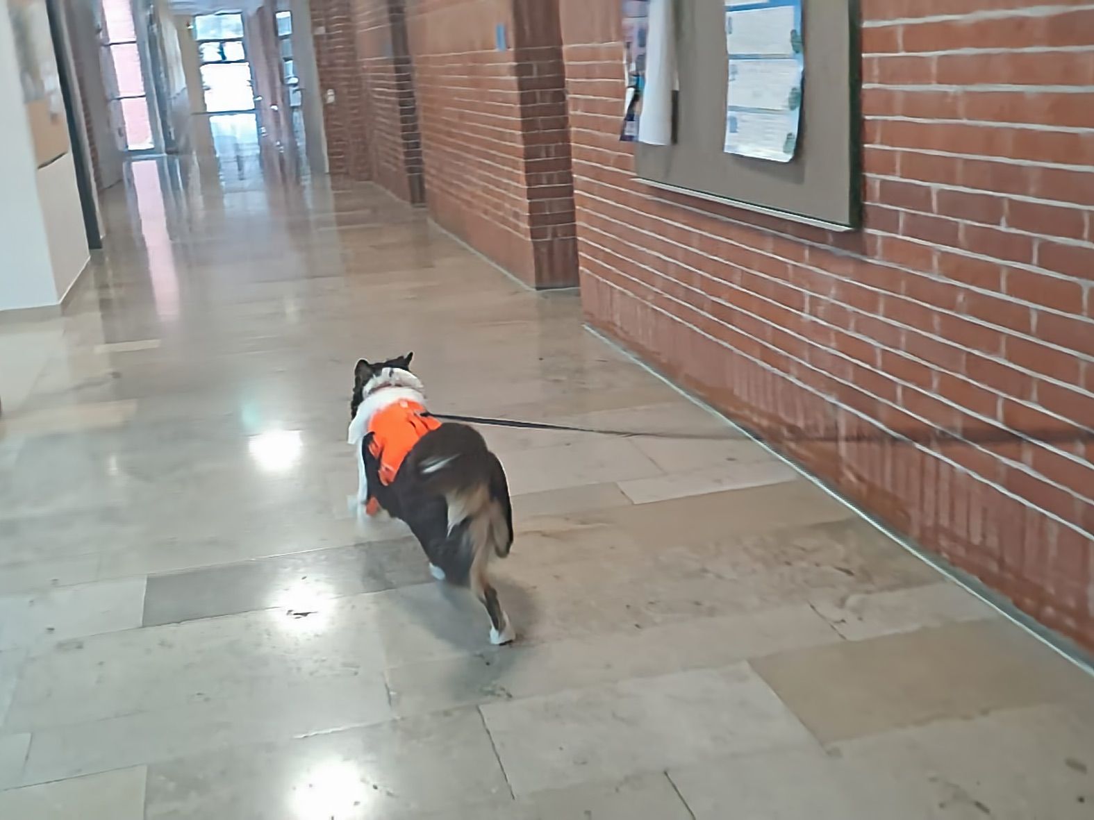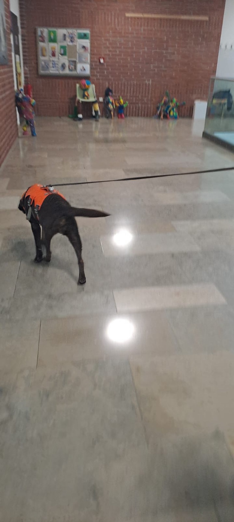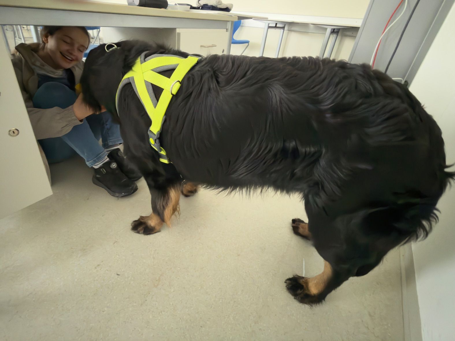 Aus unserer Erfahrung des Vorjahrs durften alle Teams, also auch alle Hunde in der großen Empfangshalle des Gymnasiums warten. So waren Mensch und Hund richtig gechillt.